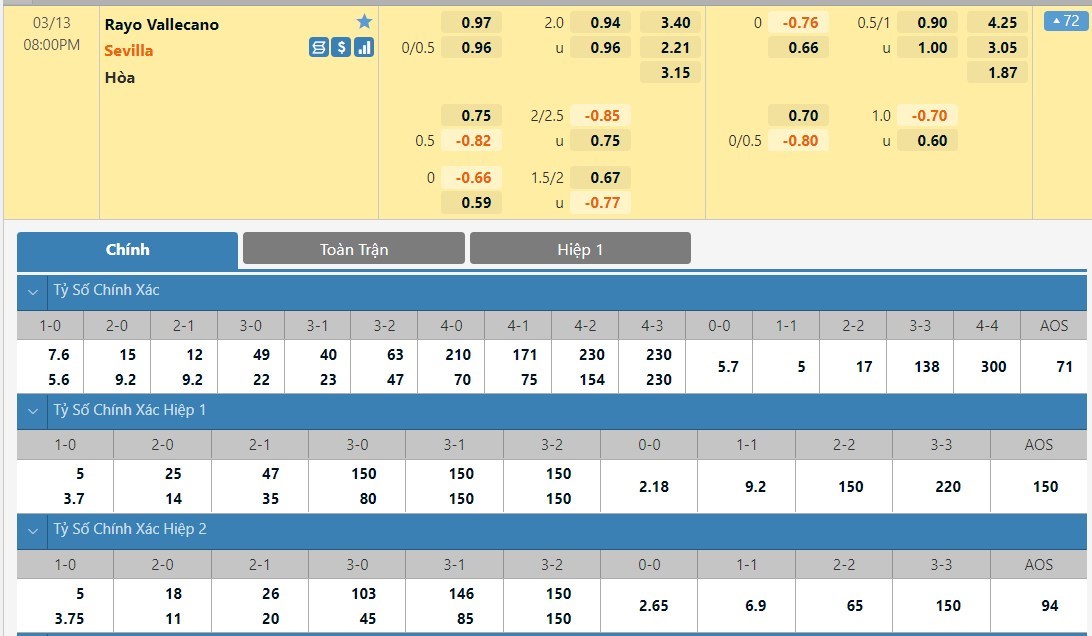 Tip kèo tỷ số hiệp 1: Rayo Vallecano 0-0 Sevilla
