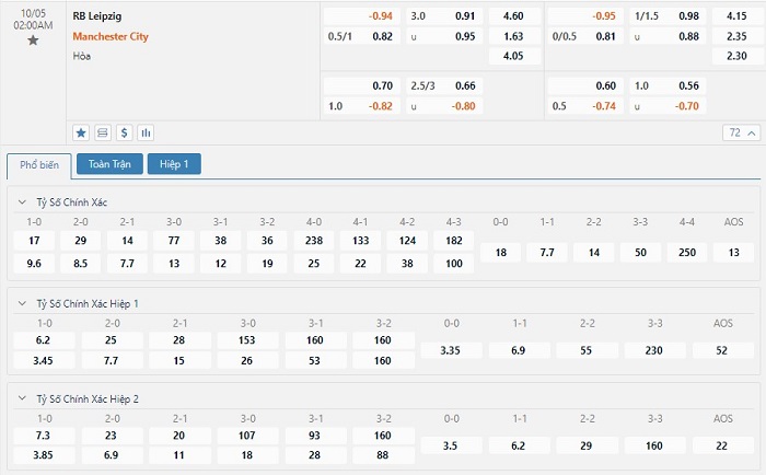 Trong 5 trận đấu gần nhất trên mọi đấu trường, RB Leipzig đã mang về cho mình 12 pha lập công cùng với việc đã có 5 lần phải vào lưới nhặt bóng. Bên kia chiến tuyến, Man City đã sở hữu 9 bàn thắng, còn lại là việc hàng thủ đã phải nhận 5 bàn thua. Các nhà đầu tư nên tin tưởng vào khả năng nổ Tài ở cuộc đối đầu này với tỷ lệ tài xỉu là 3 trái.