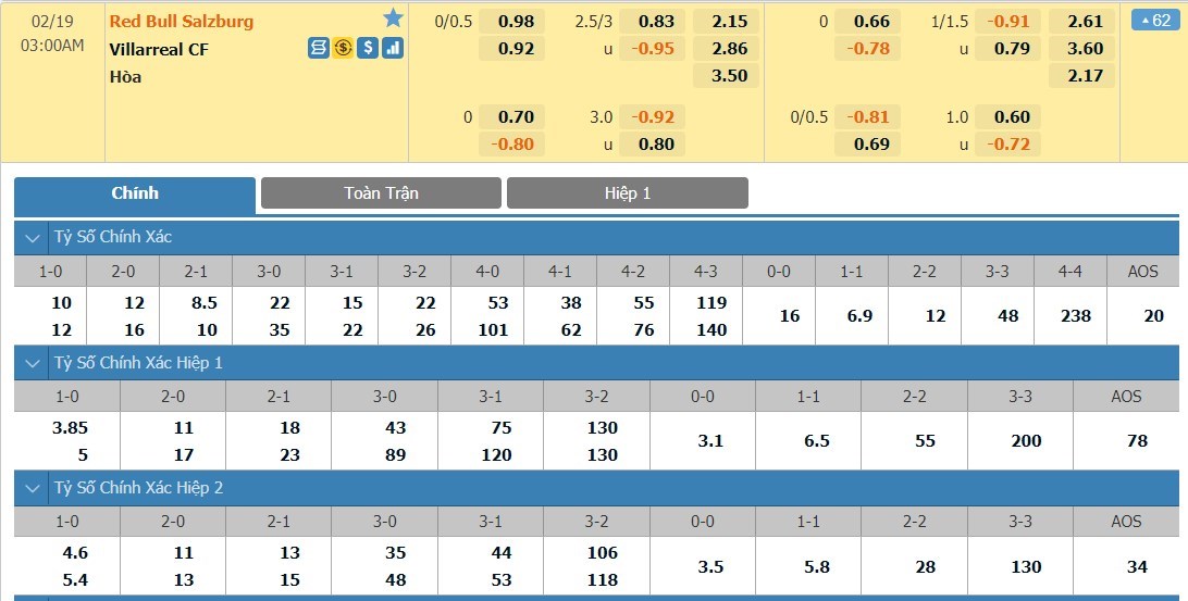 RB Salzburg có lợi thế chơi trên sân nhà nhưng nhà cái cũng chỉ đặt họ vào thế chiếu trên cùng mốc chấp nhẹ nhàng -1/4 bàn. Không phủ nhận rằng đại diện của Áo đang có phong độ cao với chuỗi 7 chiến thắng liên tiếp nhưng rõ ràng đó đều là những thắng lợi trước các đội bóng tại giải quốc nội, nơi mà RB Salzburg đang thể hiện sự thống trị. Còn khi chạm trán với Villarreal là một câu chuyện hoàn toàn khác.