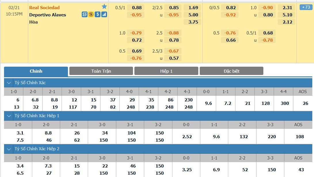 Tip kèo tỷ số hiệp 1: Real Sociedad 1-0 Deportivo Alaves