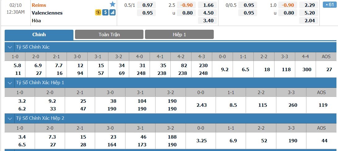 Tip kèo tỷ số hiệp 1: Reims 0-0 Valenciennes