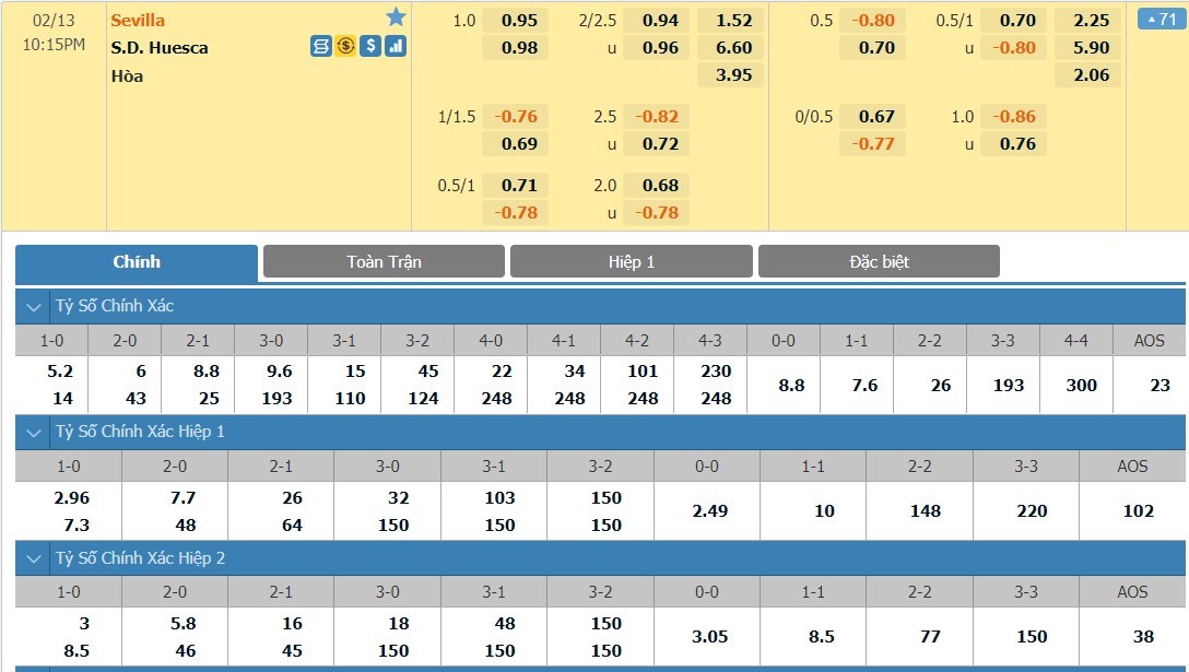 Tip kèo tỷ số hiệp 1: Sevilla 0-0 Huesca