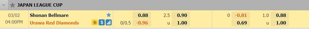 Tip kèo tỷ số hiệp 1: Shonan Bellmare 0-0 Urawa Red Diamonds