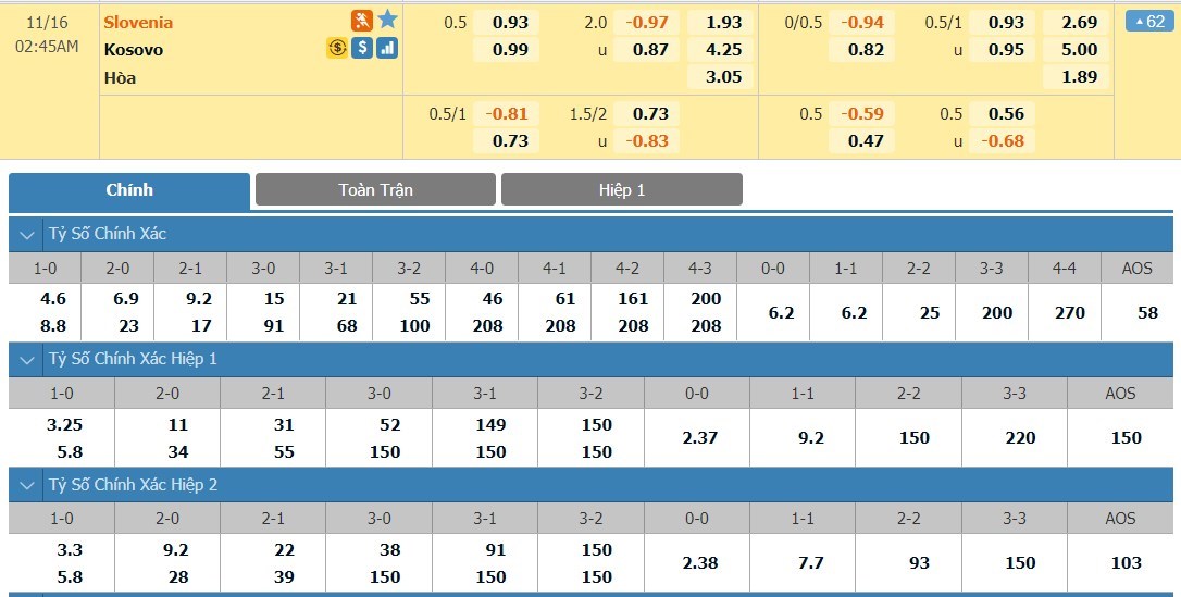 Tip kèo Châu Á hiệp 1: Chọn Slovenia -1/4