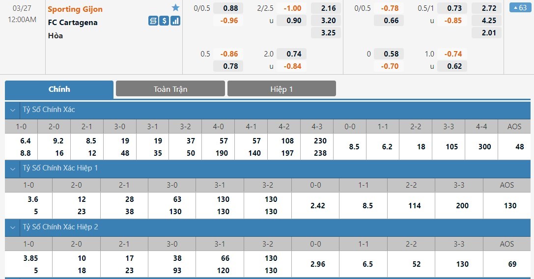Tip kèo tỷ số hiệp 1: Sporting Gijon 0-0 Cartagena