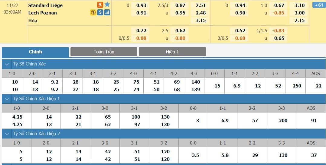 So với Standard Liege, Lech Poznan đang tỏ ra nhỉnh hơn. Phong độ của Standard Liege cũng đang là không tốt và nhiều khả năng đội chủ nhà sẽ tiếp tục phải nhận 1 thất bại. Cả 4 trận đấu gần đây nhất của Lech Poznan đều kết thúc với ít nhất 3 bàn thắng được ghi và đội khách đang thi đấu khá cởi mở. Với Standard Liege, họ đang tỏ ra rất sơ hở và phòng ngự rất tệ ở 3 trận vòng bảng Europa League vừa qua. Khả năng trận đấu này có thể xuất hiện nhiều bàn thắng được đánh giá khá cao.