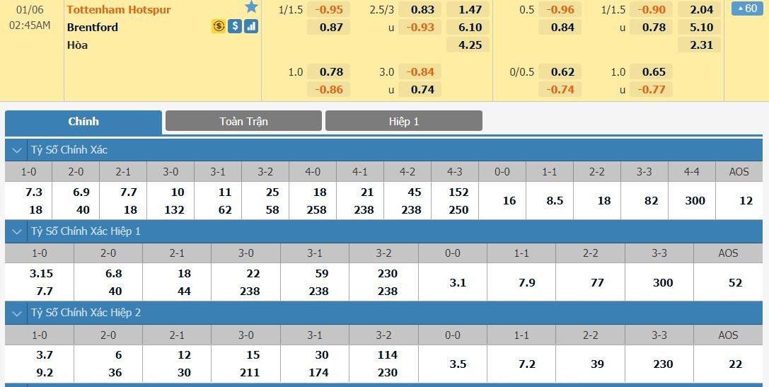 Cần biết rằng 4 lần đụng độ gần đây nhất giữa 2 đội, Tottenham hoàn toàn bất bại trước Brentford khi có cho mình 3 thắng lợi và chỉ nhận duy nhất 1 trận hoà. Bên cạnh đó, họ còn phải làm khách tại sân nhà của đối thủ. Tottenham đã thắng 8 trong 10 lần gần nhất chơi tại đây. Với tinh thần tốt và lợi thế sân nhà, Spurs có thể sẽ giải mã thành công đối thủ của mình. Mốc chấp -1 1/4 bàn không phải vấn đề đối với Son Heung Min cùng các đồng đội.