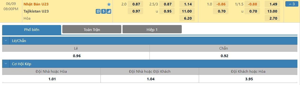 Tip kèo tỷ số hiệp 1: U23 Nhật Bản 2-0 U23 Tajikistan