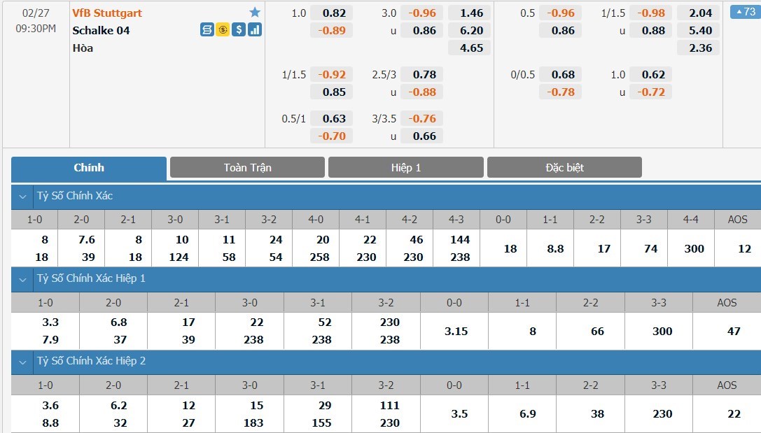 Tip kèo tỷ số hiệp 1: VfB Stuttgart 1-0 Schalke 04