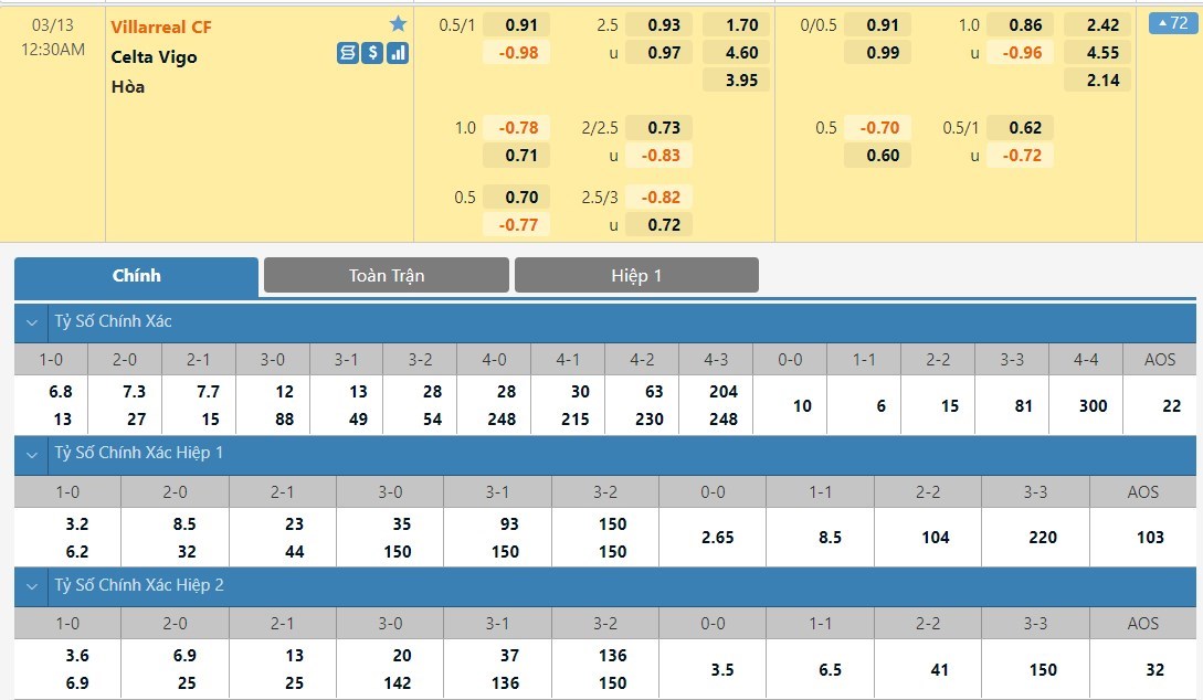 Khá bất ngờ khi nhà cái đưa ra tỷ lệ kèo châu Á là chủ nhà chấp tới 0.75 trái. Nên nhớ rằng phong độ của tàu ngầm vàng ở thời điểm hiện tại là không nhỉnh hơn bao nhiêu so với đội khách. Hơn nữa Villarreal lại đang gặp nhiều áp lực từ cuộc đua giành vé dự cúp châu Âu. Vậy nên ở kèo đấu này thì Celta Vigo vẫn sẽ là lựa chọn mang tới cơ hội ăn cao hơn cho người chơi.