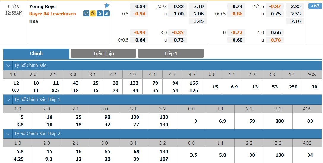 Tip bóng đá hôm nay lúc 00h55 ngày 19/02/2021 – Young Boys vs Bayer Leverkusen – Europa League